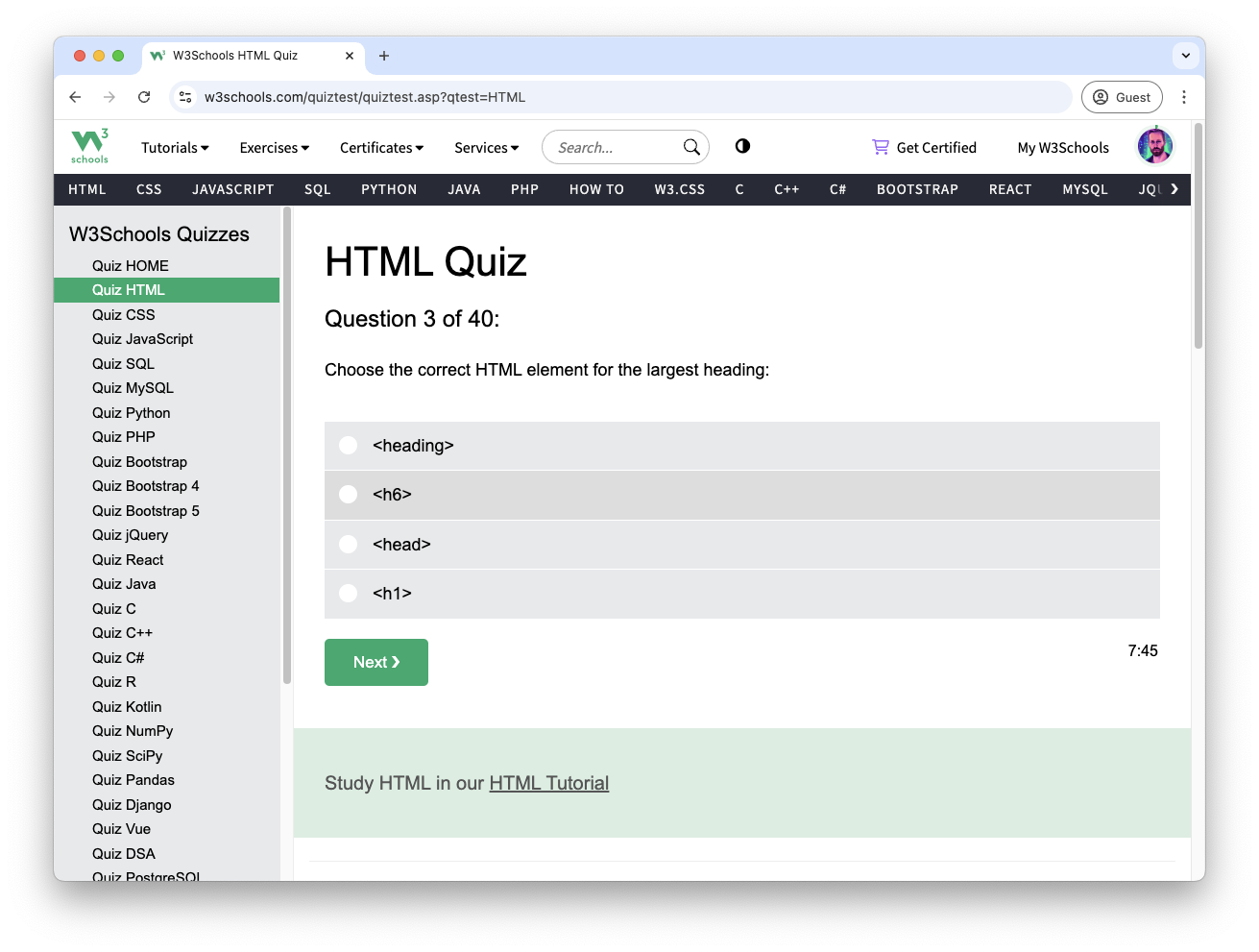 Syntax exercises are available in all W3Schools Free Tutorials.