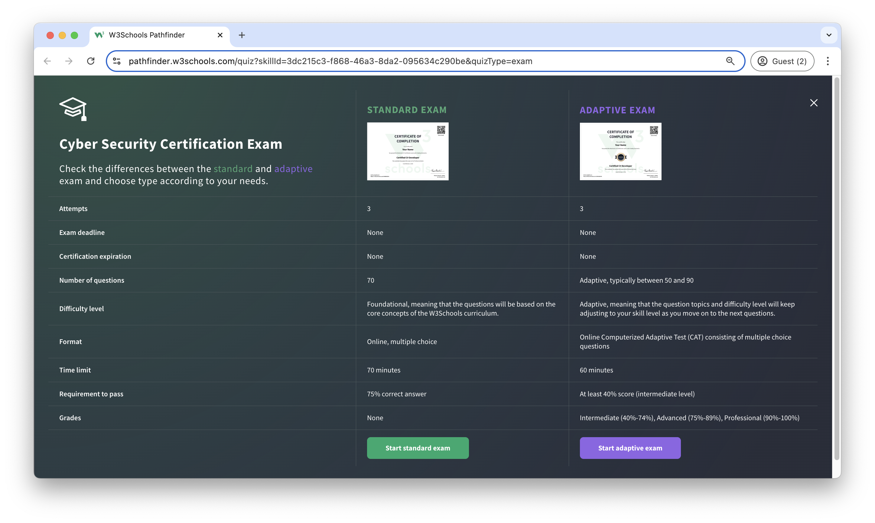 The Cyber Security exam is a test that summarizes the W3Schools Cyber Security syllabus.