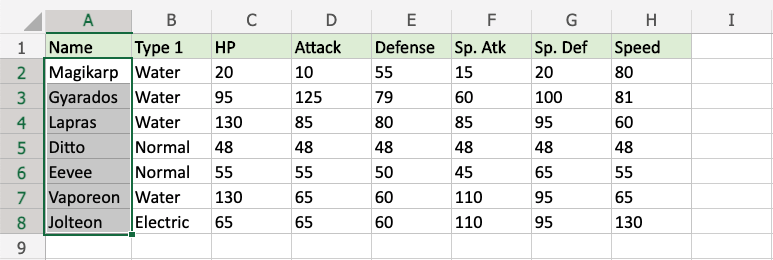 Now, the cells with text values equal to "Magikarp" will be highlighted in yellow: