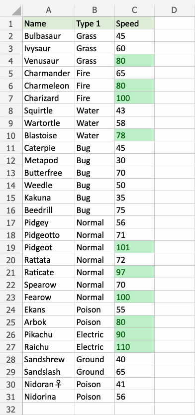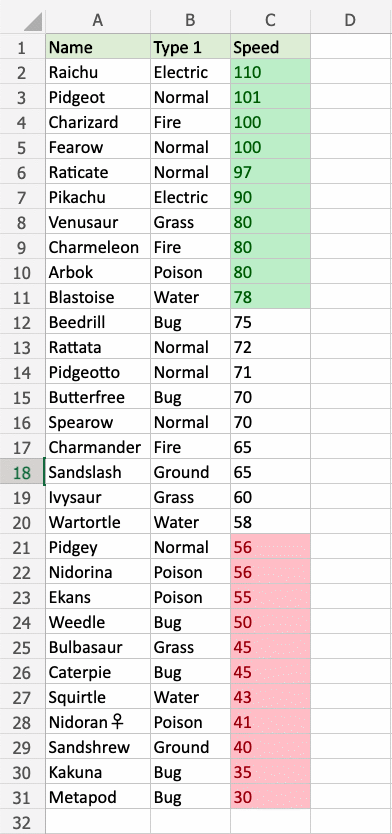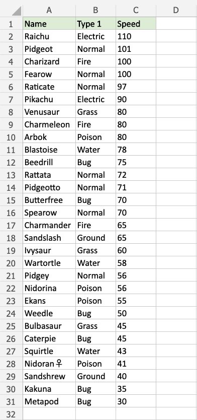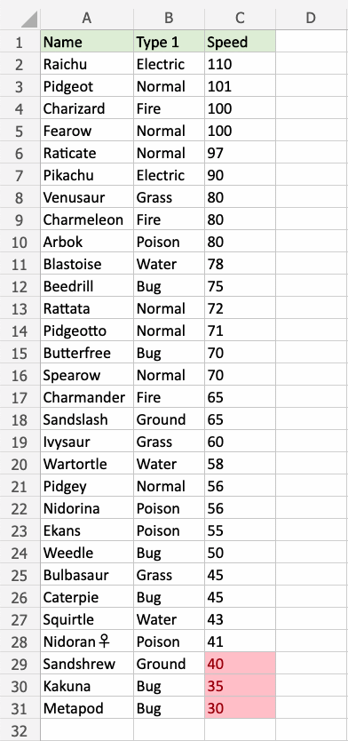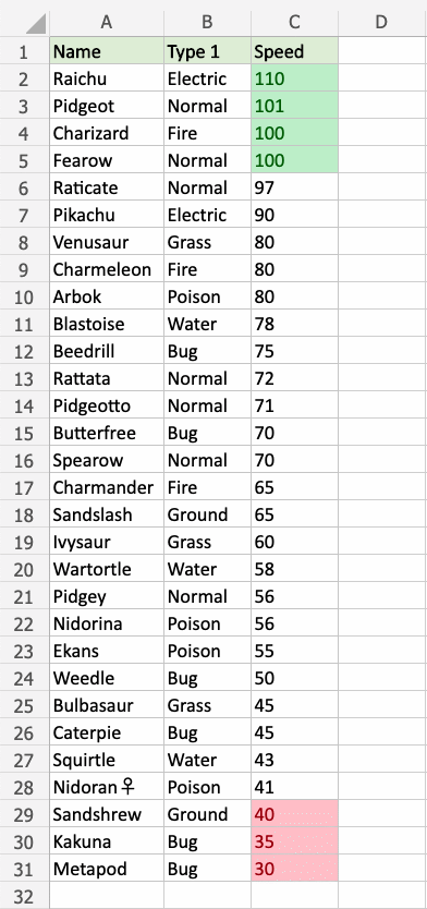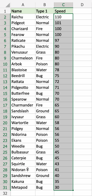 Great! Now, the top 10 Speed values are easily identified.