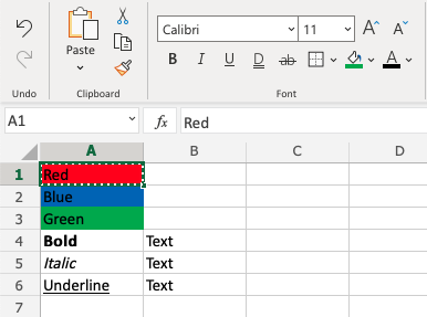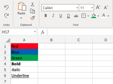 Let's try some examples and copy formats with Colors and font Characteristics, such as bold, italic and underline: