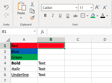 Last example. Copy the Font Characteristics from A4:A6 to B4:B6.