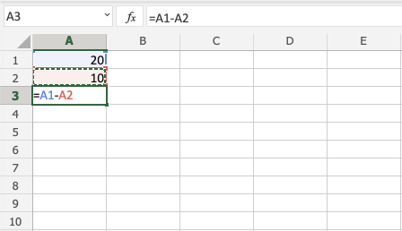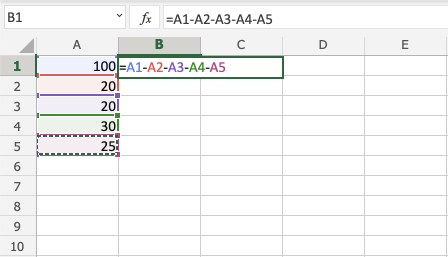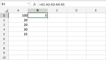 Subtracting using two cells, step by step: