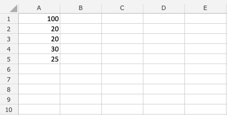 Let's subtract using many cells. First, type the following values: