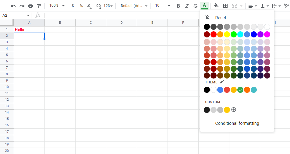 Google Sheets Format Font Color