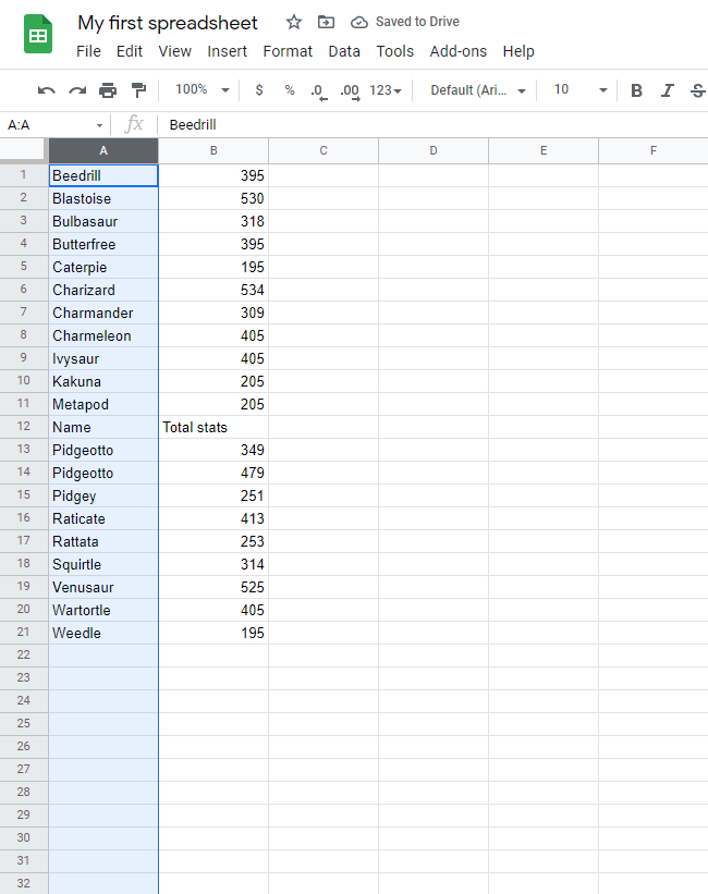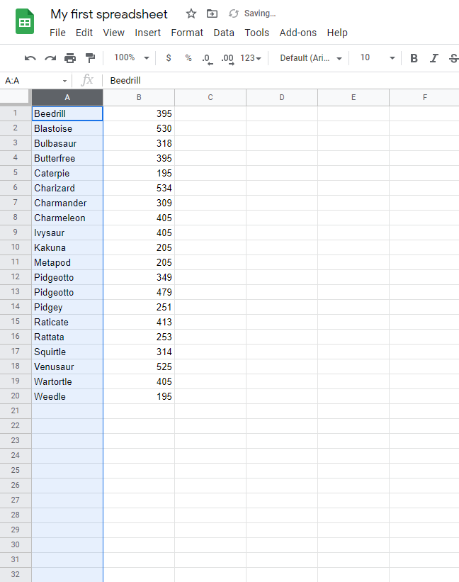 This example shows another way to sort Pokemon names in ascending order (from A to Z).