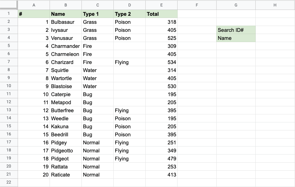 Have a look at that! The VLOOKUP function has successfully found the Pokemon Squirtle which has the ID# 7.